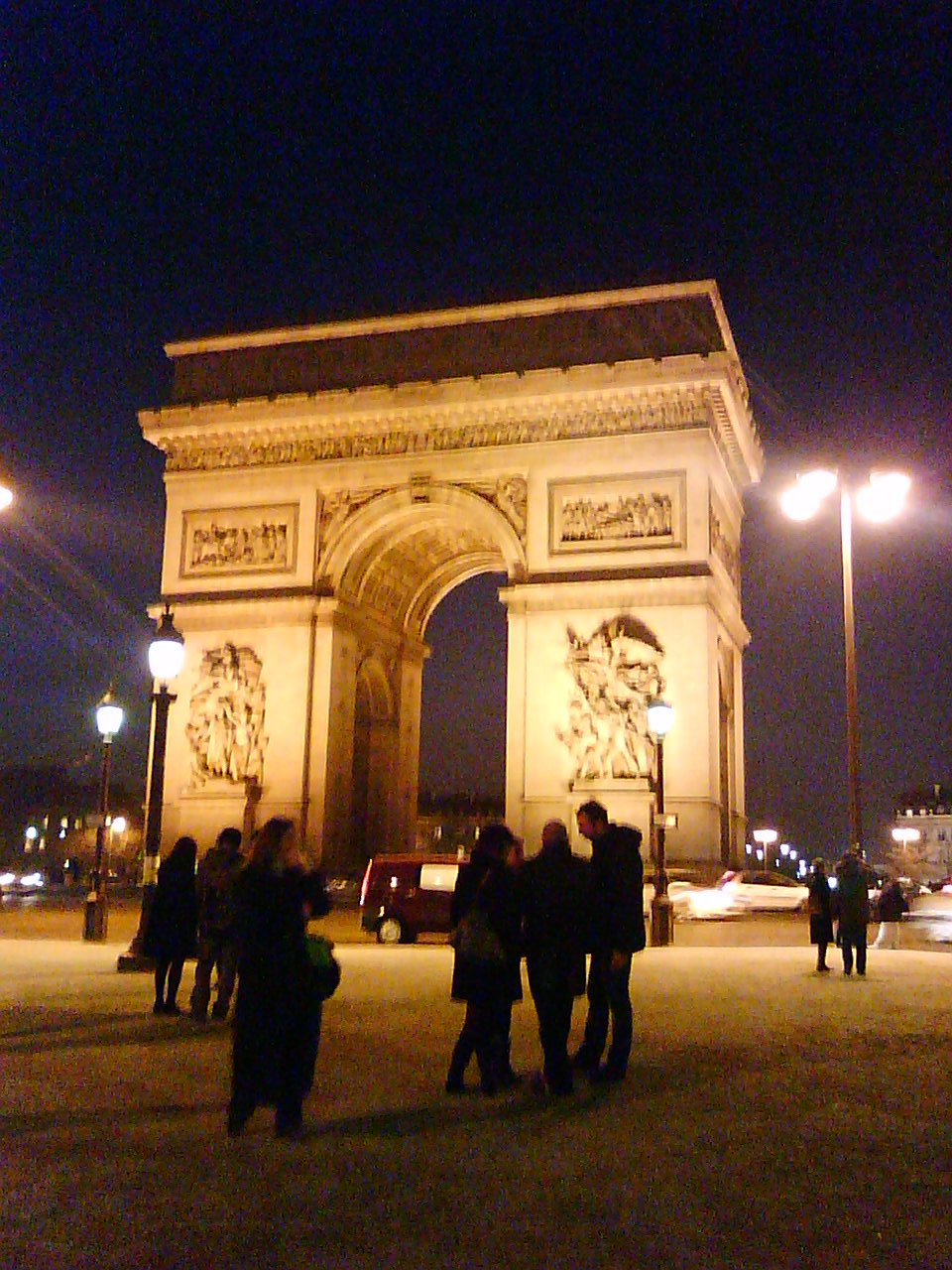 それから、夜の凱旋門とエッフェル塔を見るべく、シャンゼリゼ通りに行きました。